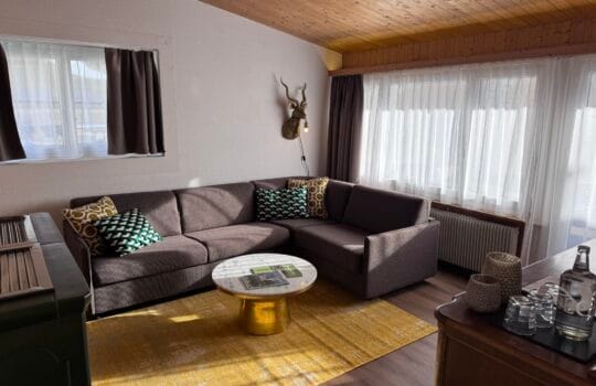 Essen. Schlafen. Wohnen. All in One. Heimelig eingerichtetes Appartement mit zwei Schlafzimmern, Wohnzimmer, Küche. Zwei Schlafzimmer mit 2 Doppelbett (180 x 200cm). Das Appartement ist hell und liebevoll, bietet Platz für Familienzeit und gemeinsame Erlebnisse. Erholen Sie sich beim Anblick der bezaubernden Bergwelt auf dem kleinen Balkon. Das Appartement ist ca. 60m² gross.